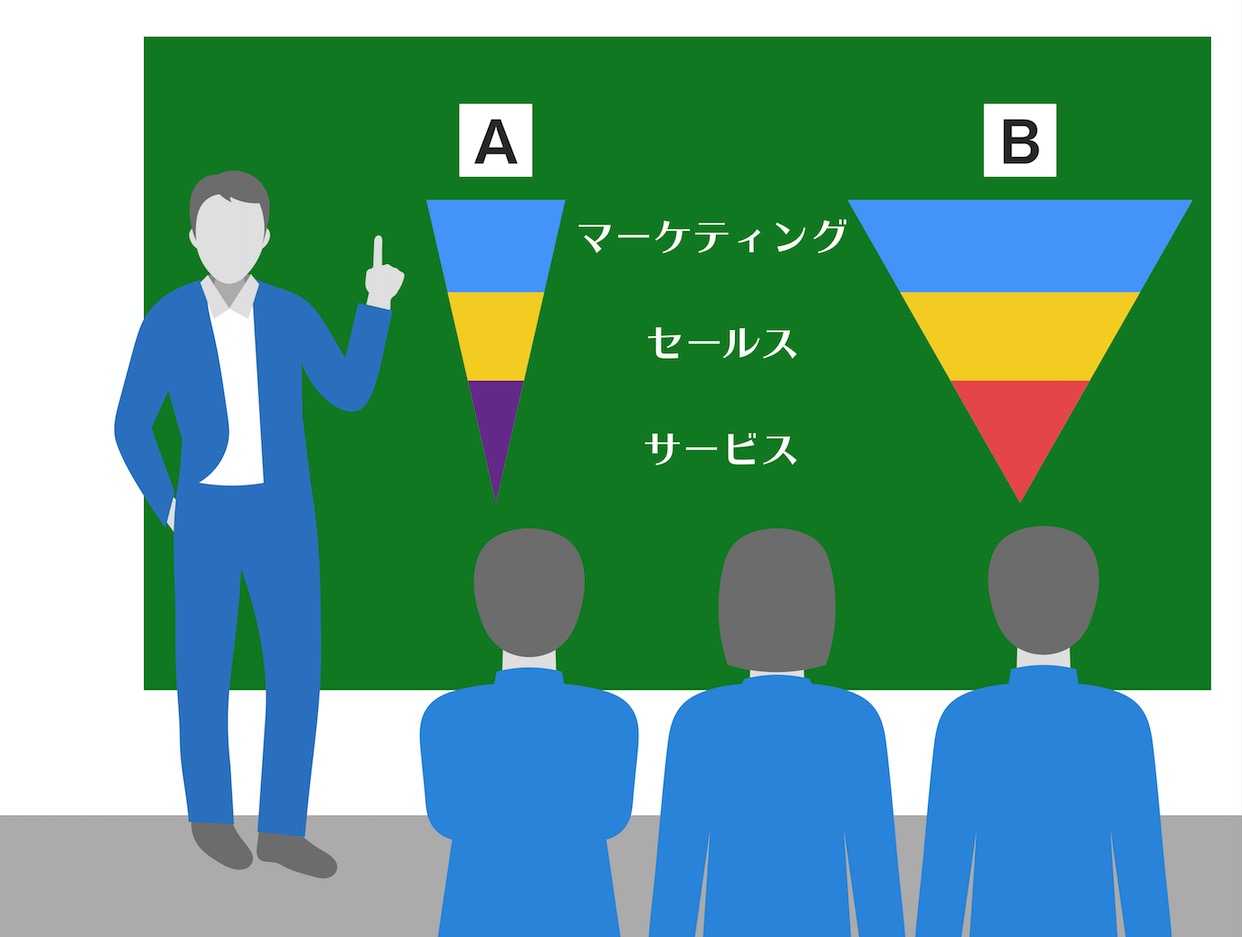 売上に直結するサービスを増やそうと思うなら、力を注ぐべきなのは「セールスの対象になる人を増やすためのマーケティング活動」というわけです。