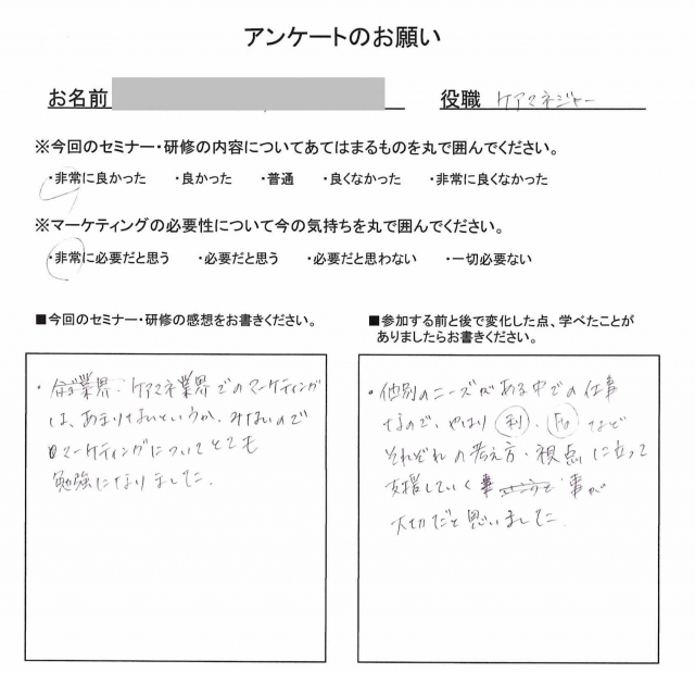 「デイサービス集客のヒントが見つかる!」と話題の”介護集客セミナー動画(90分)”をプレゼント!さらに、完全書き下ろしの”集客レポート(14,000文字)”も無料配布中です。デイサービスや介護施設の集客力アップに役立つヒントが盛りだくさんの内容です。ぜひこの機会にセミナー動画&レポートをGETしてください。