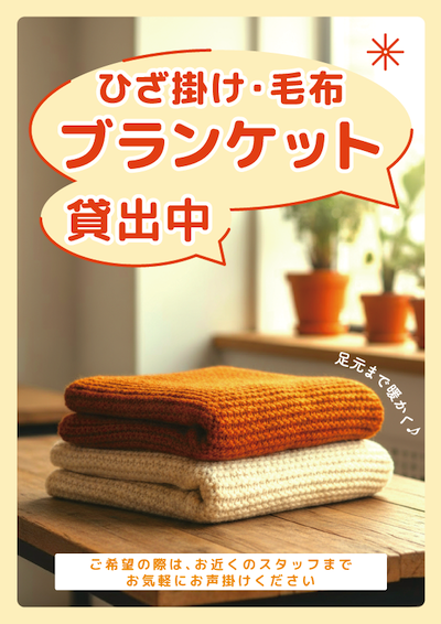 【無料配布】今年も「ブランケットの貸出」をやさしく伝えるPOP作りました