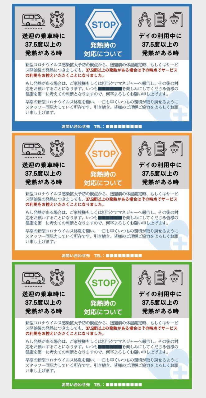 【送迎時の体温測定のお知らせ】と同じフォームなので、必要な方を使ってください。(両方ともダウンロードできるようにしています)