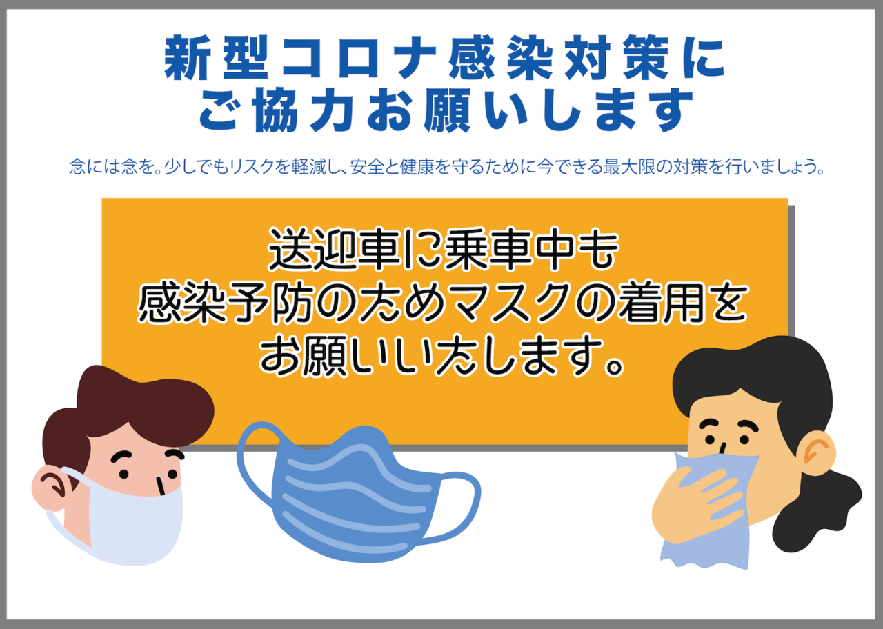 送迎中も換気はするし、こまめに消毒したりはもちろんするけど、車中でお互い2m離れることも現実的じゃない、かと言ってマスク着用を義務化していいものか。